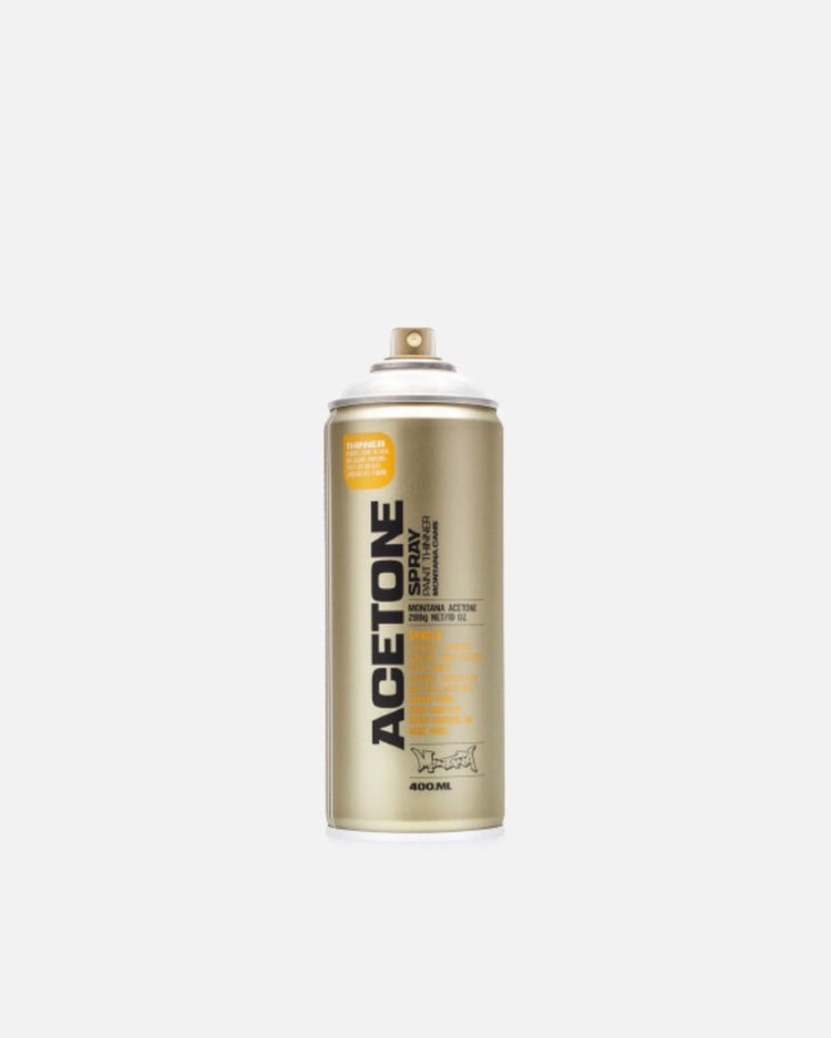 Montana Acetone 400ml also known as Cap Cleaner, is a universal spray thinner, which allows you to remove paint, lacquer, silicone, wax and tar residues.