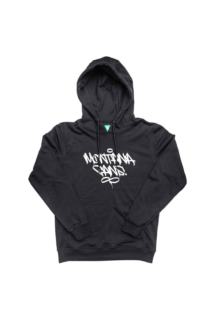 Montana MC SICOER Black Felpa con cappuccio. Le nuove felpe con cappuccio Montana TYPO+LOGO Black sono realizzate in cotone 60% e polyestere 40% da 300gm² e presentano una stampa serigrafica del logo Montana  disegnato dal writer Sicure, sul petto di colore bianco. Il design delle felpe è disponibile in una variante di prodotto, con cappuccio. Disponibile nelle taglie S, M, L, XL