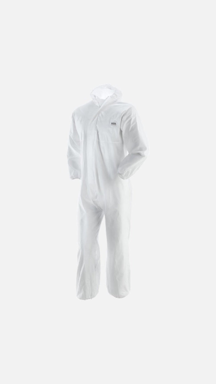 Tuta monouso in TNT traspirante, ventilato e soffice, inodore, non sterile, con con cappuccio, polsini e caviglie elastici, chiusura anteriore con zip, senza copripiedi. Buona vestibilità, ideale per non sporcarsi durante le verniciature.